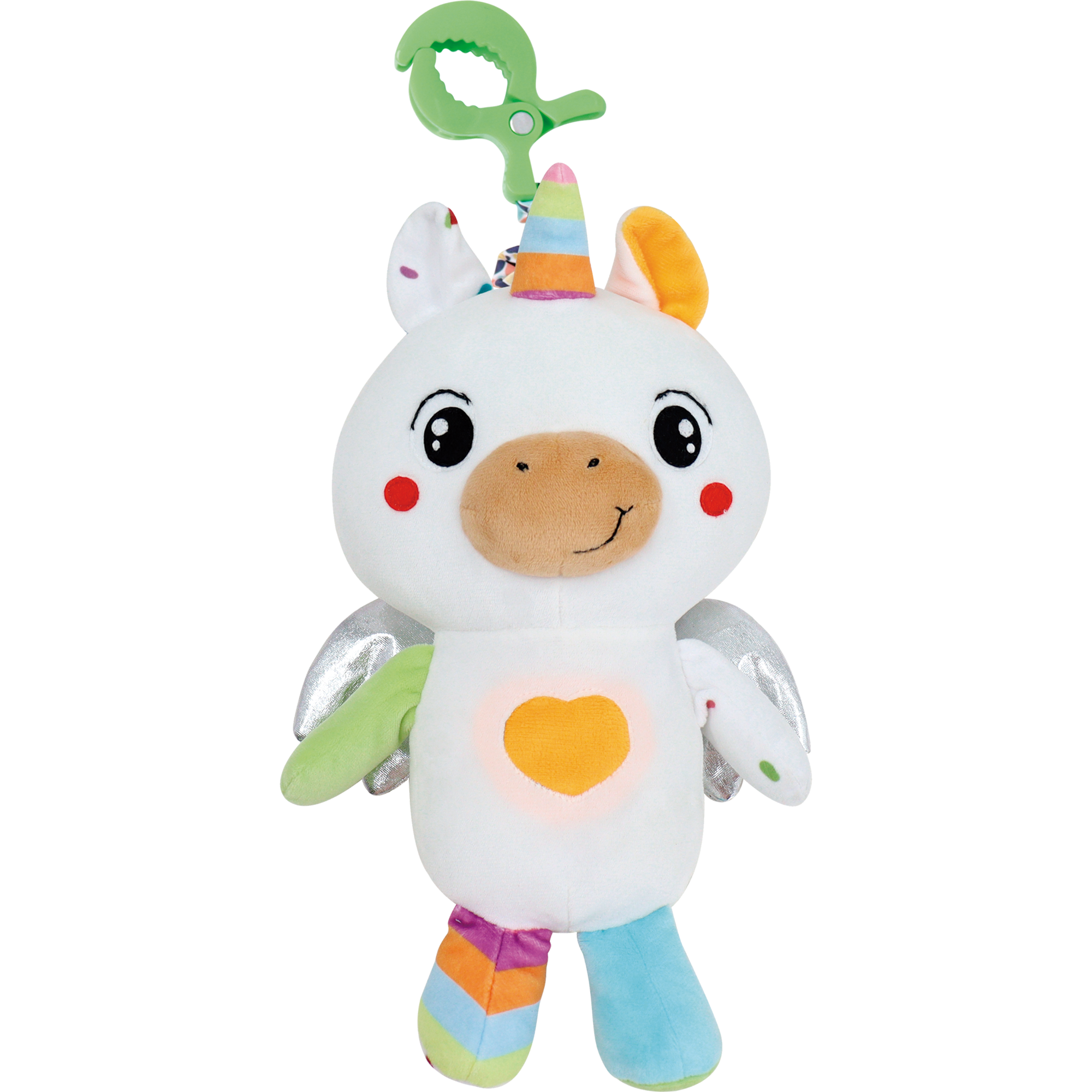 Pelúcia interativa com luzes, sons suaves e mordedor, promovendo conforto e estímulos sensoriais para o bebê.